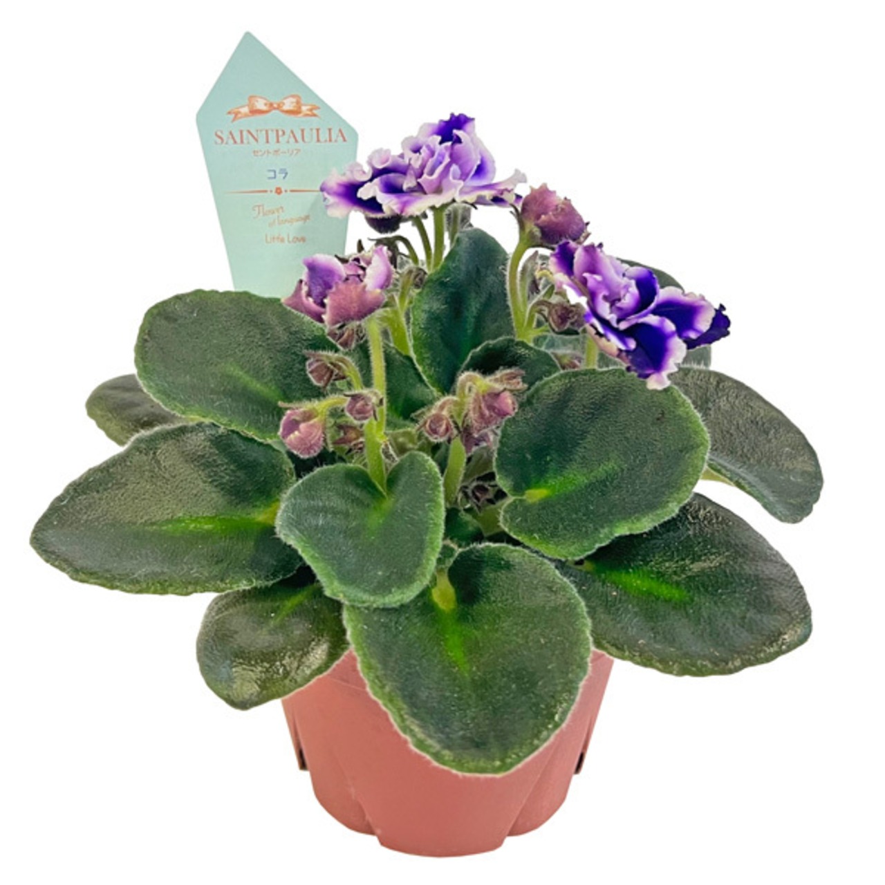セントポーリア コラ パープルxホワイト 3.5号 開花株 バイカラー 苗 アフリカスミレ 耐陰性 室内 園芸 観葉植物