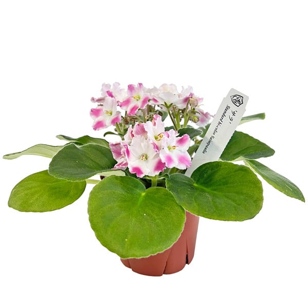 セントポーリア サラ ホワイト×ピンク 3.5号 開花株 スタンダードカラー 苗 アフリカスミレ 耐陰性 室内 園芸 観葉植物