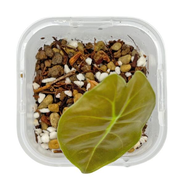 Alocasia micholitziana (ミコリッチアナ)と Alocasia cuprea(クプレア)の交配種です。