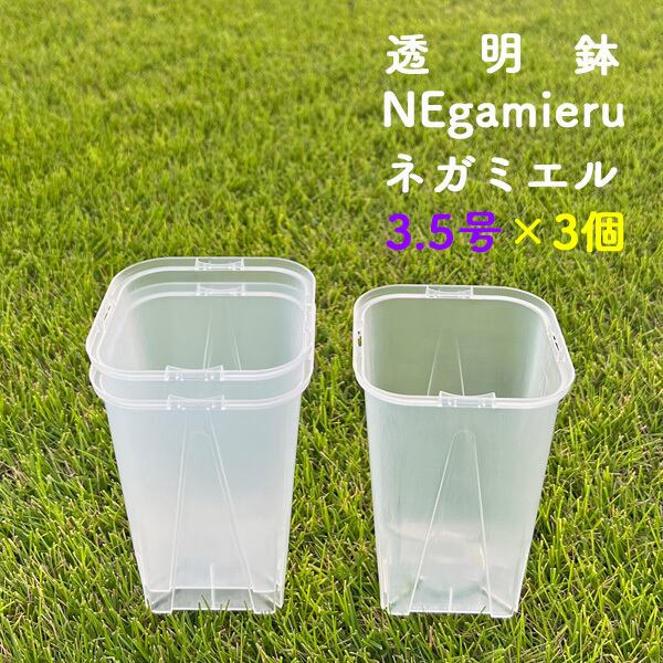 ネガミエル 3.5号 3個セット 透明スリット鉢 NEgamieru 浅岡園芸 プラスチック クリア 透明 スリット 根が見える 鉢 観葉植物